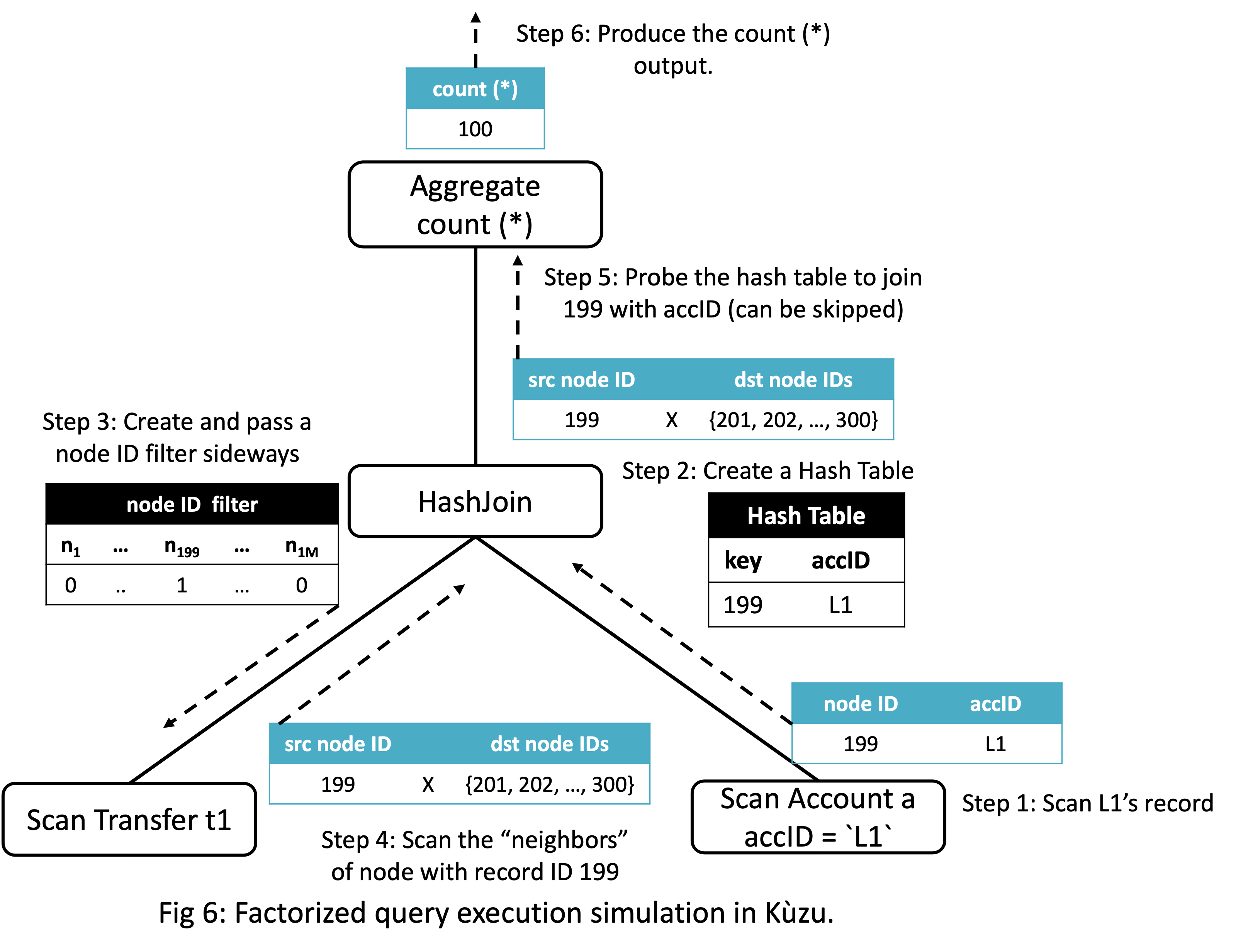 This post forms the 2nd part of my 3-part posts on the contents of our CIDR paper where we introduced Kuzu. The 3rd piece will be on another technique called worst-case optimal join algorithms, which is also designed for a specific class of m-n joins. Both in this post and the next, I have two goals. First is to try to articulate these techniques using a language that is accessible to general software engineers. Second, is to make people appreciate the role of pen-and-paper theory in advancing the field of DBMSs. Both of these techniques were first articulated in a series of purely theoretical papers which gave excellent practical advice on how to improve DBMS performance. Credit goes to the great theoreticians who pioneered these techniques whom I will cite in these posts. Their work should be highly appreciated.