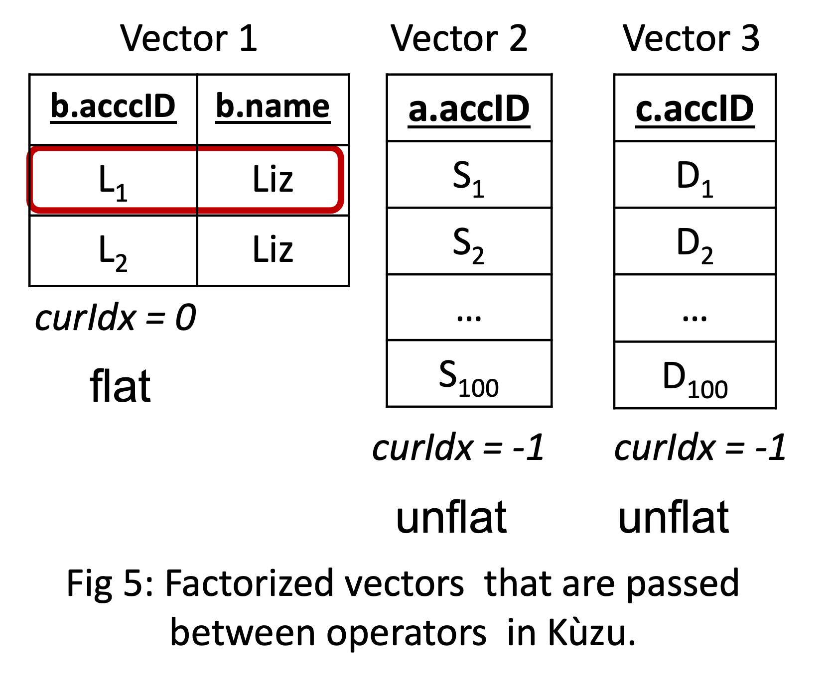 Instead, Kuzu’s operators pass (possibly) multiple factorized vectors of tuples
