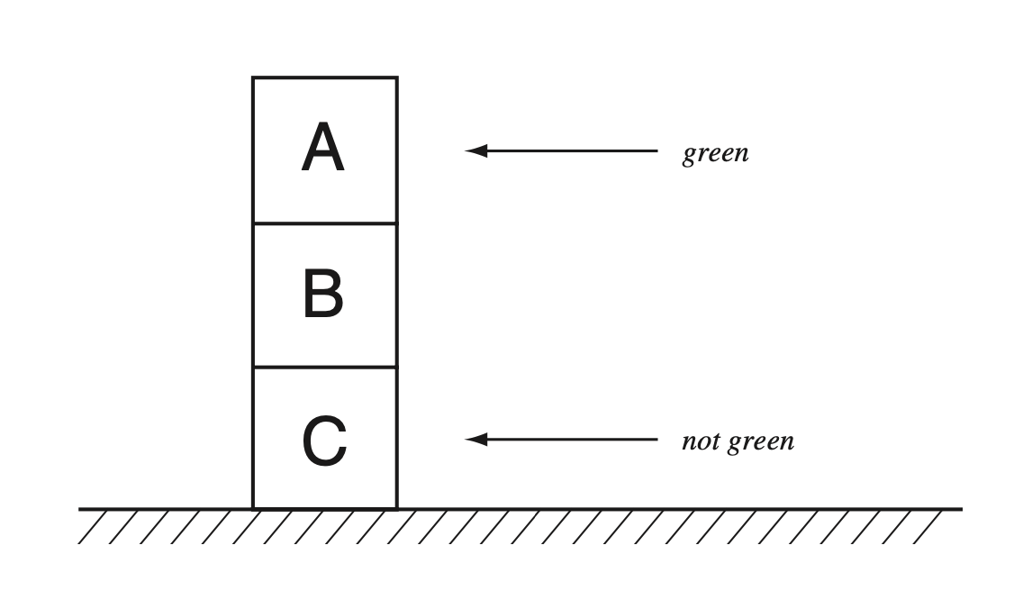 box B is not known. We also want to model that A is on top B and B is on top of C.