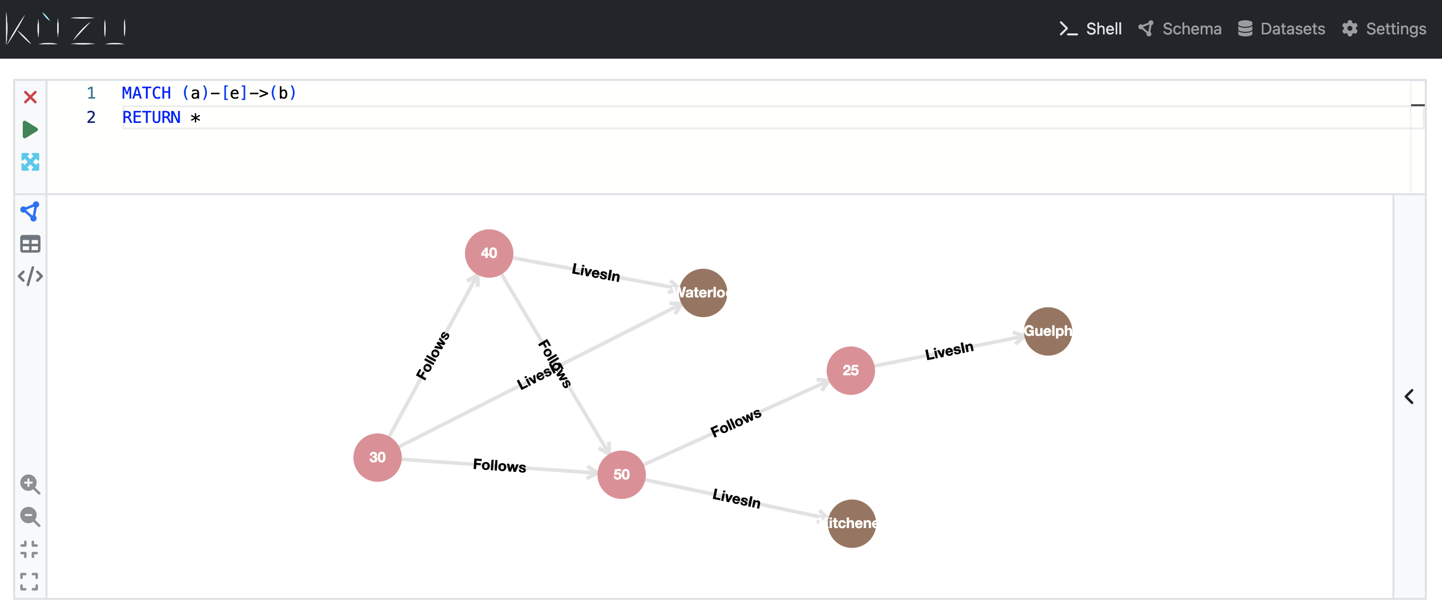 Using KùzuExplorer, you can also issue Cypher queries similar to Kuzu’s