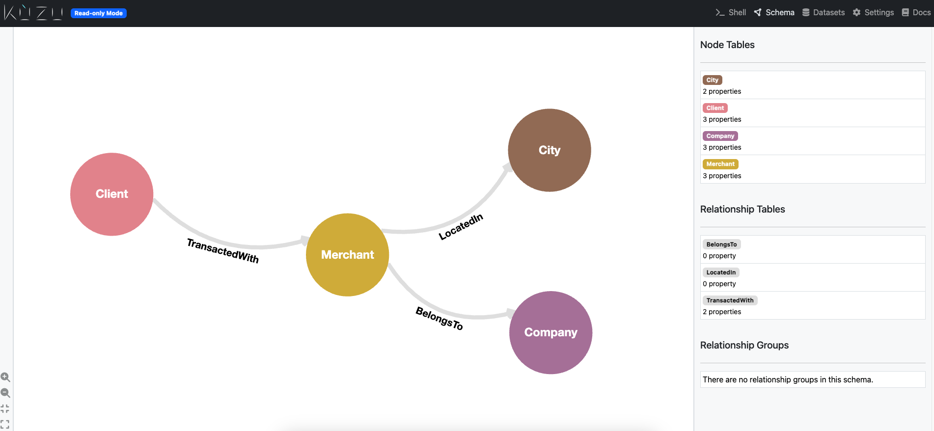 A key feature of Kuzu is that it’s a schema-based graph database, making it highly convenient to read data that already exists in relational systems. Like RDBMSs, Kuzu also relies on strongly-typed values in columns and uses primary key constraints on tables to model the data. The only difference is that Kuzu uses separate node and edge tables, which we’ll show how to create below.